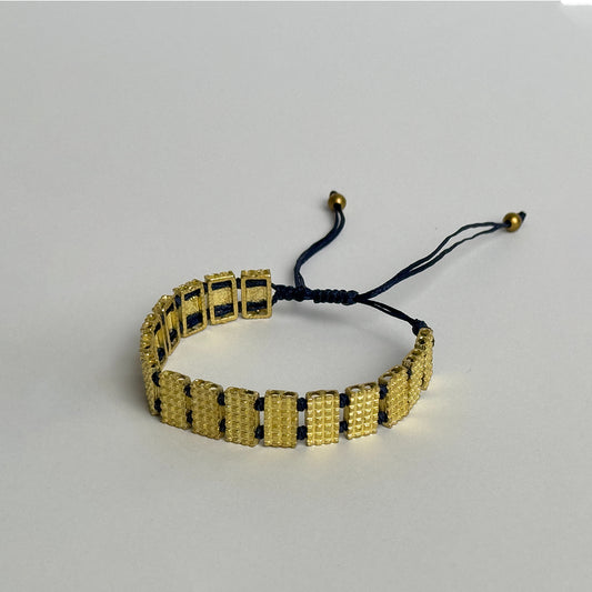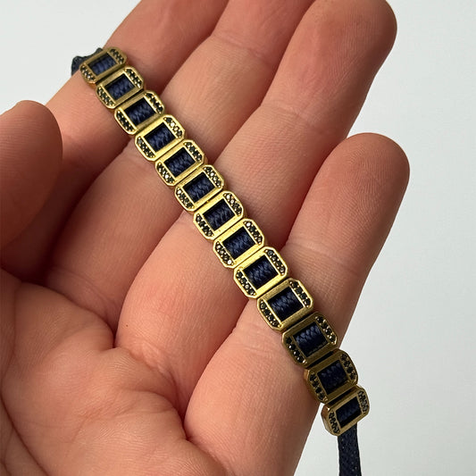 A navy blue bracelet with metallic details, designed to give a sense of calm elegance....