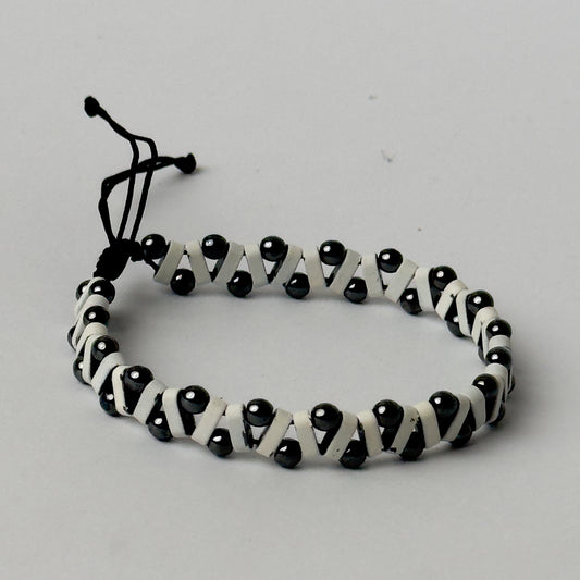 An intriguing hexagonal design with metallic accents, this bracelet is perfect for those who appreciate...