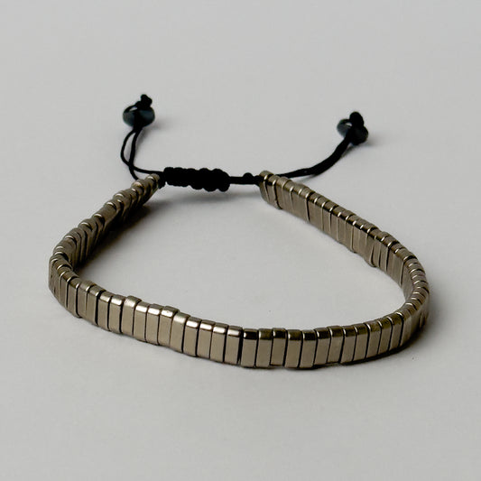Featuring silver-toned beads arranged in a precise block pattern, this bracelet offers a clean and...