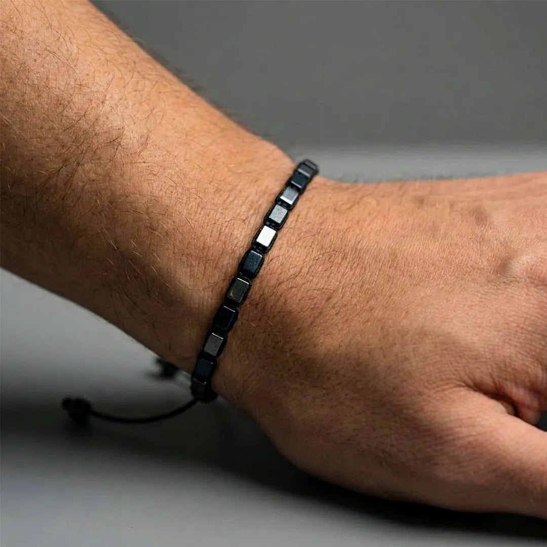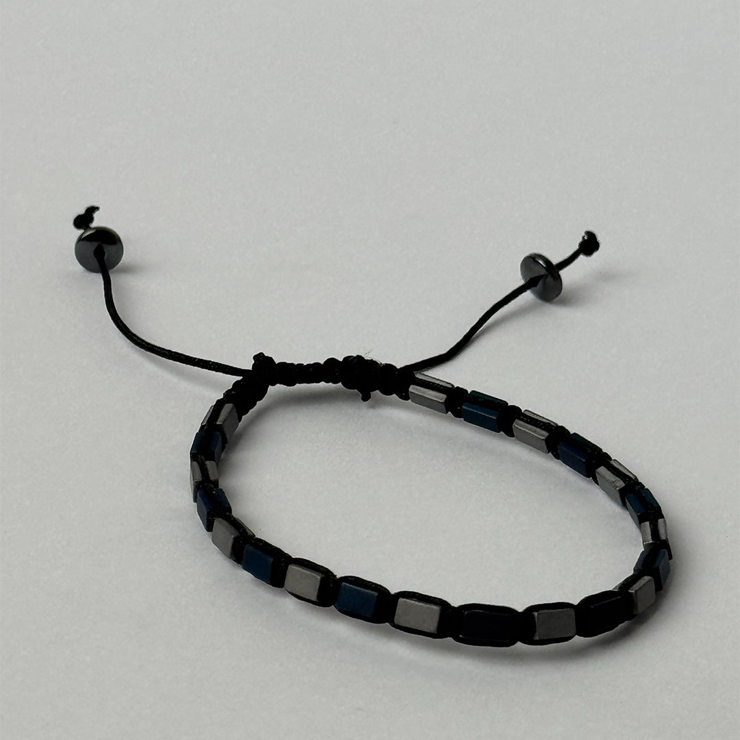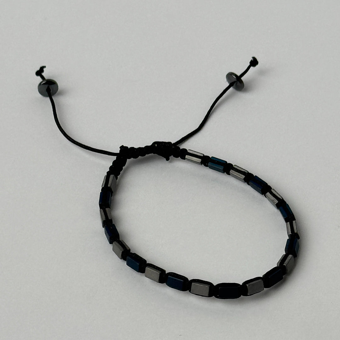 Combining deep blue hues with block-style beads, this bracelet offers a calming yet strong design, perfect for those who appreciate simplicity and sophistication.