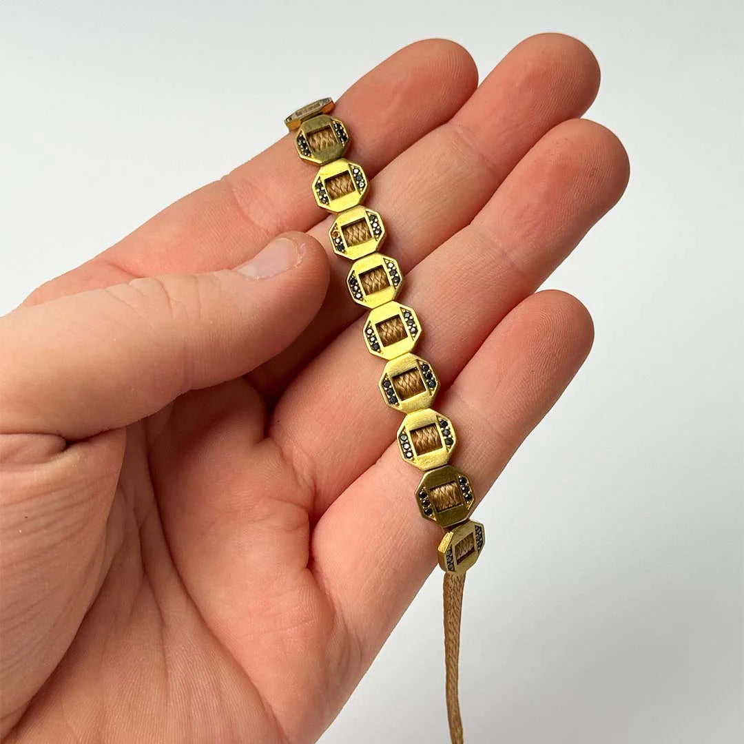 A bracelet that features antique bronze accents, creating a rustic yet refined design. It’s perfect for those who appreciate vintage-inspired pieces.