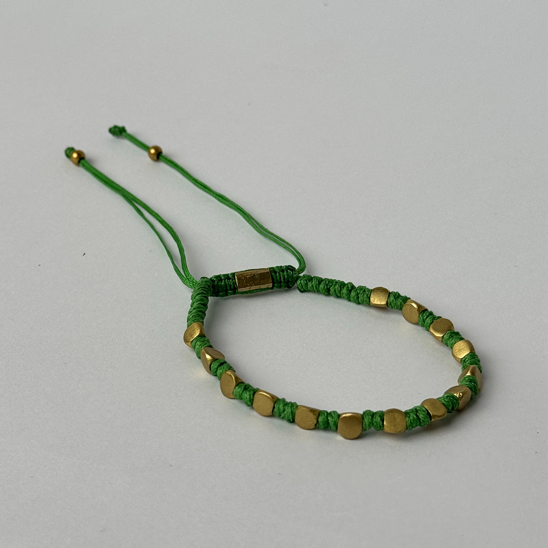 A deep green bracelet with circular accents, symbolizing renewal and growth. This accessory offers elegance with a fresh twist.