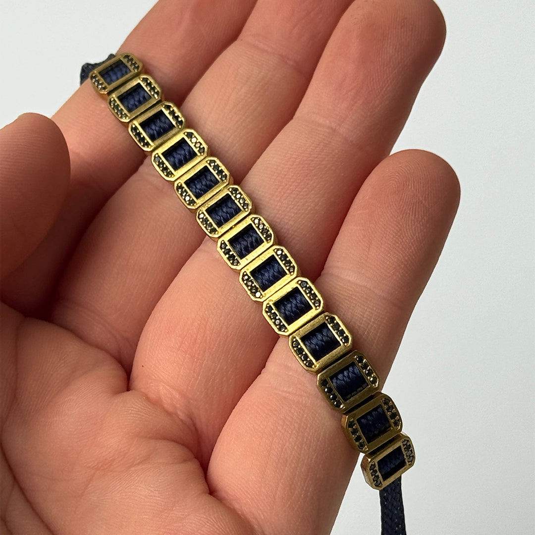 A dark blue bracelet with metallic details, designed to give a sense of calm elegance. This piece is perfect for both casual and formal occasions.