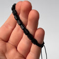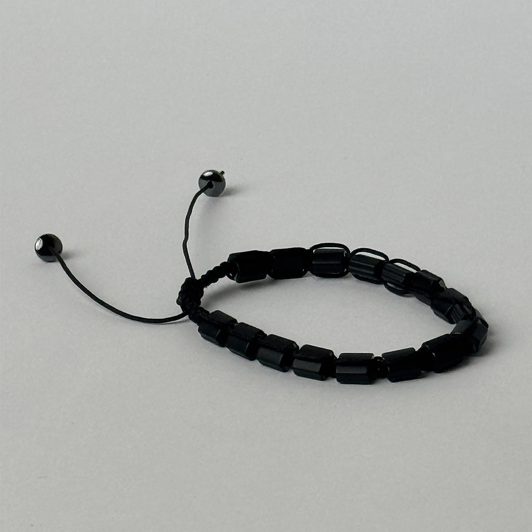 A sleek, cylindrical design with dark, polished beads. This bracelet offers a minimalist aesthetic that works well with any outfit.