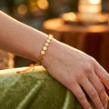 A vibrant bracelet featuring golden tones and circular beads. This piece symbolizes energy and positivity.